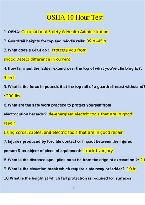 Free PDF Osha 10 hour practice test Kindle Editon ManyBooks